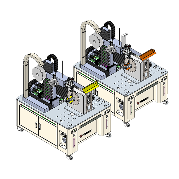 电池包防撞梁是新能源汽车底盘上专门为保护动力电池设计的安全结构,其核心作用是抵御碰撞冲击,防止电池包受挤压、穿刺引发热失控。本款焊接机配合独特的圆盘式工装设计,满足防撞梁前后端钣金封片与本体的异形焊接,通过圆盘旋转和编程,实现与型号对应的轨迹,完成焊接。
